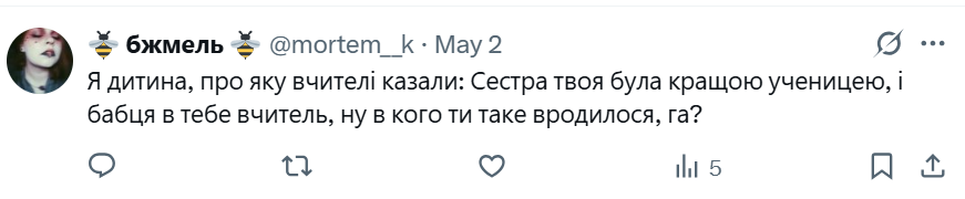 Користувачка соціальної мережі @alisha_hoffman_ на своїй сторінці запропонувала тему для обговорення "Я дитина, про яку вчителі казали:…". Про що пригадали в коментарях дописувачі, розповідає 24 Канал.