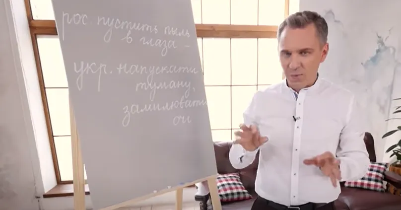 Так, Авраменко відповів на питання про те, який український відповідник має російський фразеологізм "пустить пыль в глаза". Та перш за все пояснив його значення.