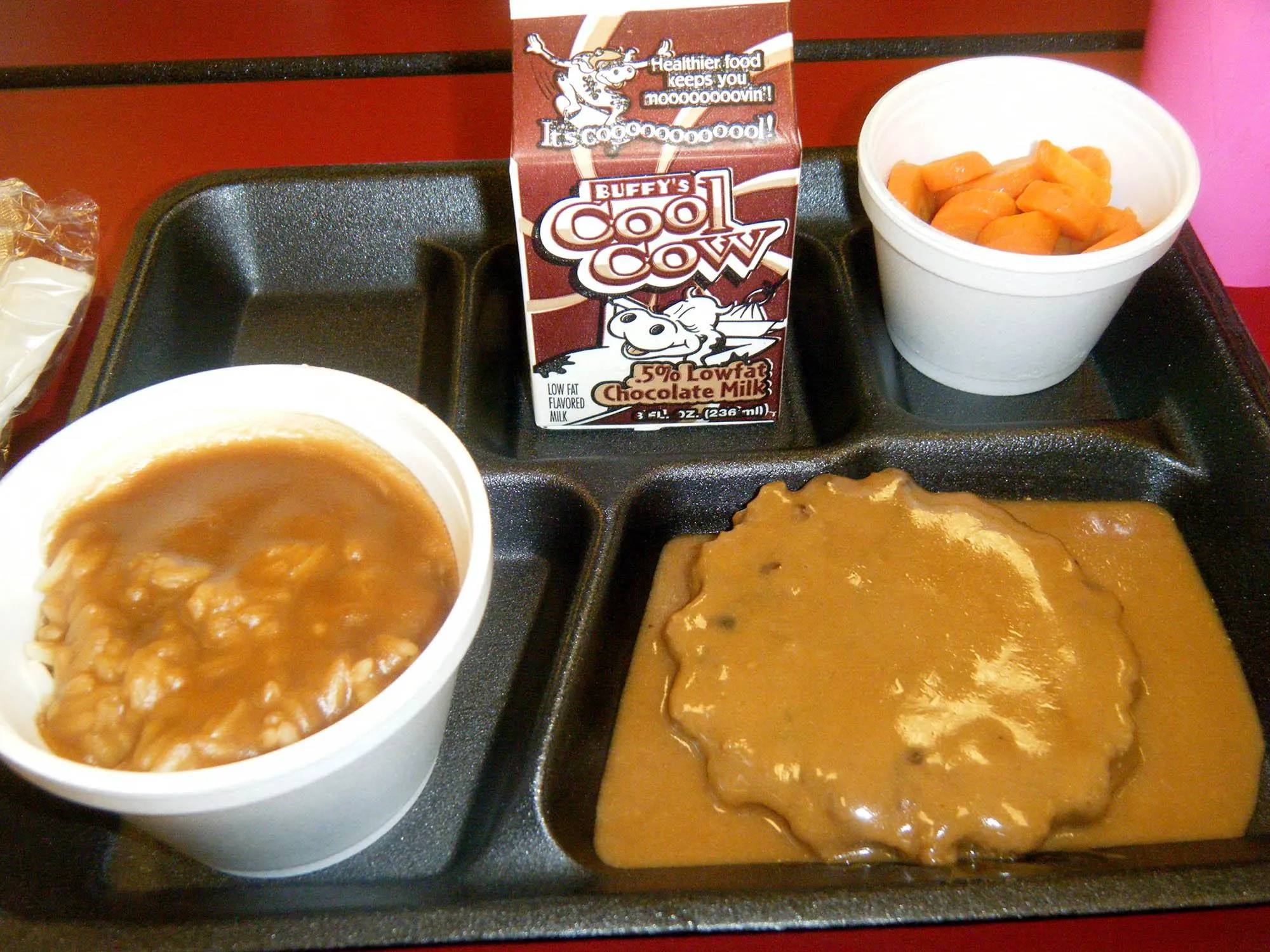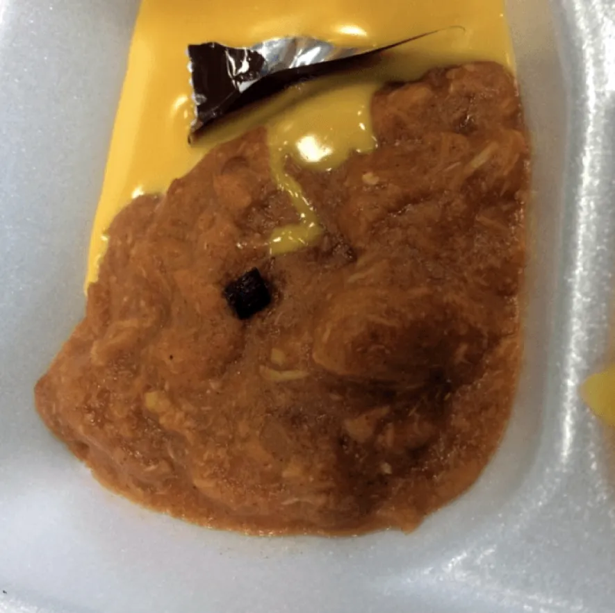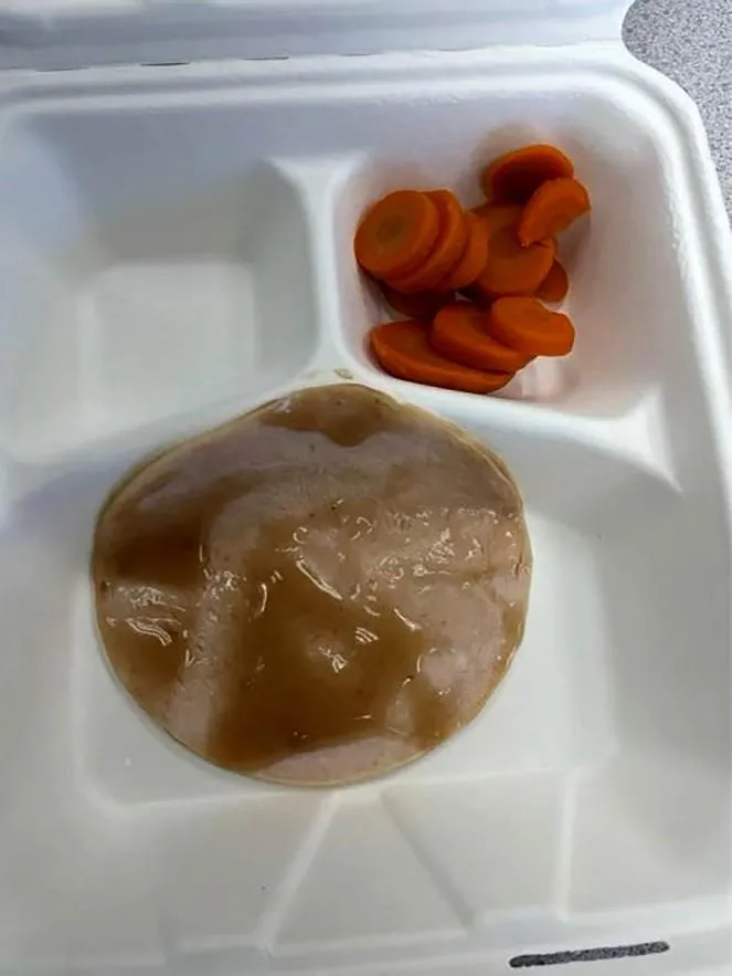 Іноді у соцмережах публікують фото з українських шкіл із сирими котлетами. Що ж, американські колеги наших кухарів теж так уміють. А ще тут котлету, до того ж, сомусь відбили.