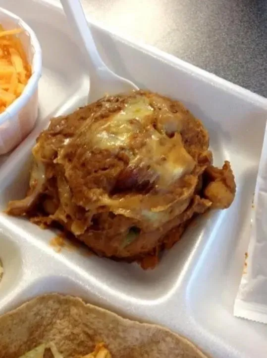 Ще New York Post наводить фото з інших американських шкіл, не вказуючи, де саме та ким вони були зроблені. Наприклад, ось "монстр" на тарілці – лазанья. Але це не точно. У будь-якому випадку виглядає страва не дуже привабливо.