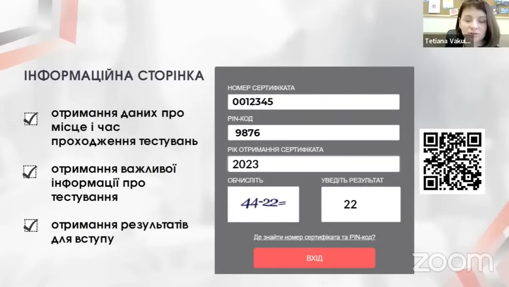 Як виглядає інформаційна сторінка учасника НМТ-2023 /скриншот з відео УЦОЯО