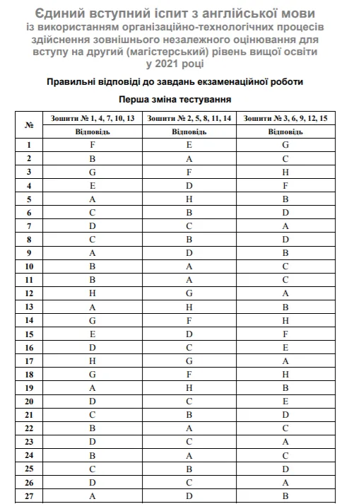 Відповіді до тесту ЄВІ з англійської мови (перша зміна)