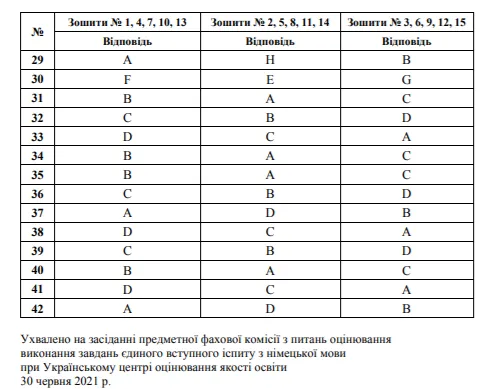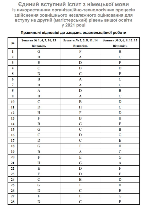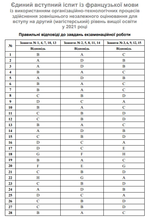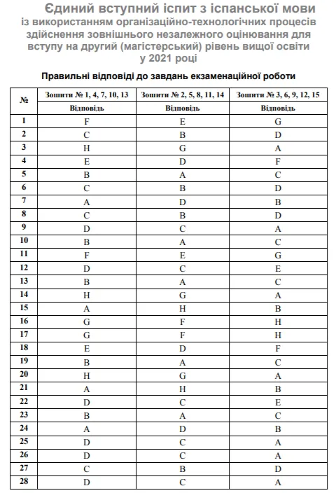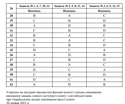 Правильні відповіді на тести ЄВІ з іноземних мов