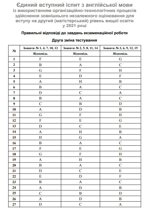 Відповіді до тесту ЄВІ з англійської мови (друга зміна)