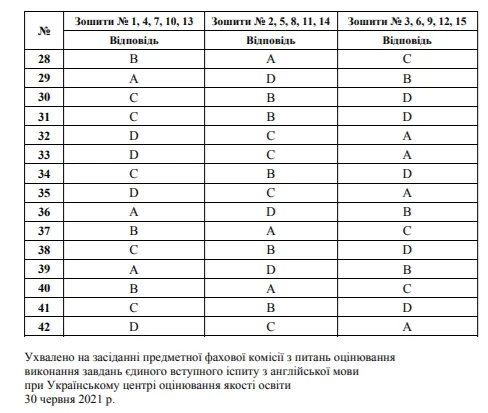 Зазначимо, що максимальна кількість тестових балів, яку може отримати учасник тестування з іноземних мов, правильно виконавши всі завдання, 42 бали.