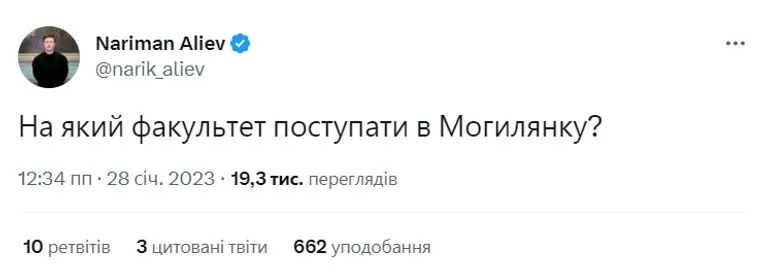 Серед таких – вже ексрадник глави ОП Олексій Арестович. Він назвав рішення Могилянки "неконституційним" та "неетичним", а також "порушенням базових принципів цивілізації, за які ми б'ємося".