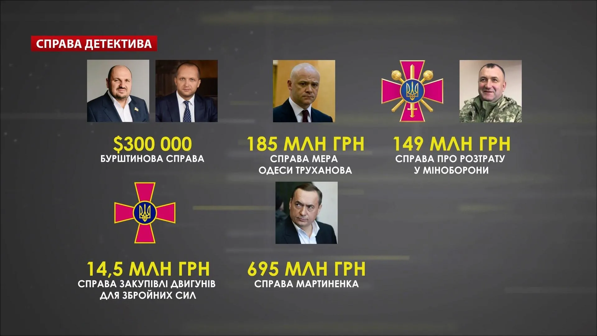 Чинного мера Одеси Геннадія Труханова підозрюють у розкраданні місцевого бюджету при купівлі майна у комунальну власність громади. Посадовців Міноборони, в тому числі, заступника міністра Ігоря Павловського – підозрюють у розкладанні 149 мільйонів гривень на закупівлі палива для потреб міністерства.