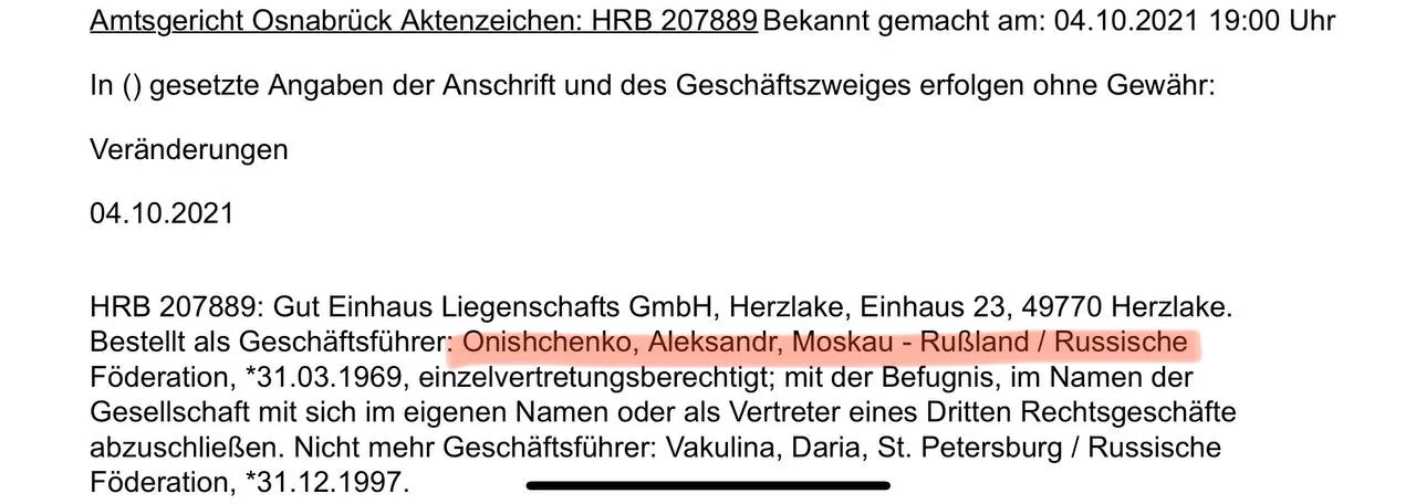 До слова, Лещенко оприлюднив запис з німецьуого реєстру юридичних осіб. Онищенко фігурує там вже як росіянин.