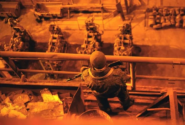 Донецкий металлургический комбинат и вооруженный силовик "ДНР". Фото: ТАСС