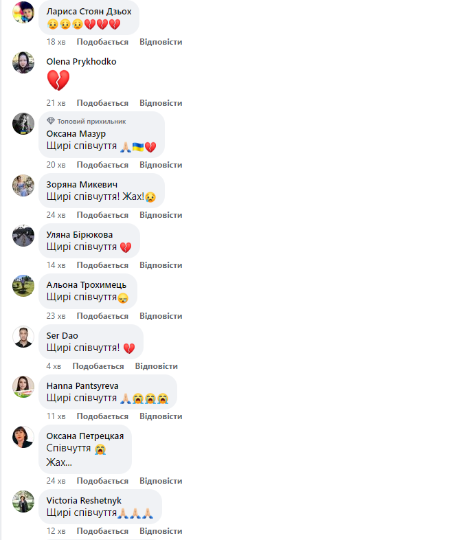 Українці висловлюють співчуття рідним та близьким загиблих / Скриншоти з мережі