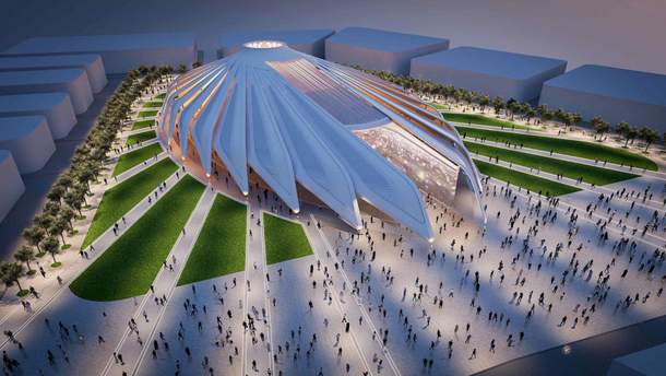 Національний павільйон господарів ОАЕ проектуватиме відомий іспанський архітектор Сантьяго Калатрава. Він нагадує крила сокола під час польоту.