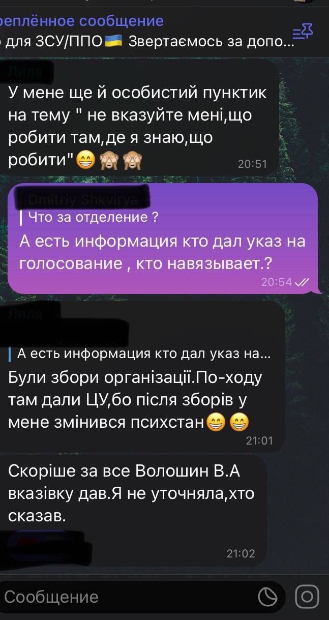 Оприлюднені листування – з чатів працівників установ обласного підпорядкування
