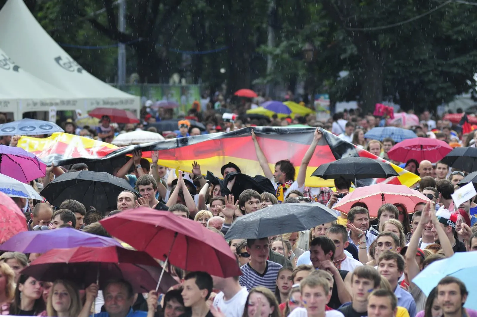 15 червня, у день поєдинку між Україною та Францією, ледь не зіпсував усе футбольне свято проливний дощ з грозою. Матч було призупинено рефері, а вболівалиники почали розбігатися хто-куди. Лише дехто танцював під зливою та жартома плавав у величезних калюжах.