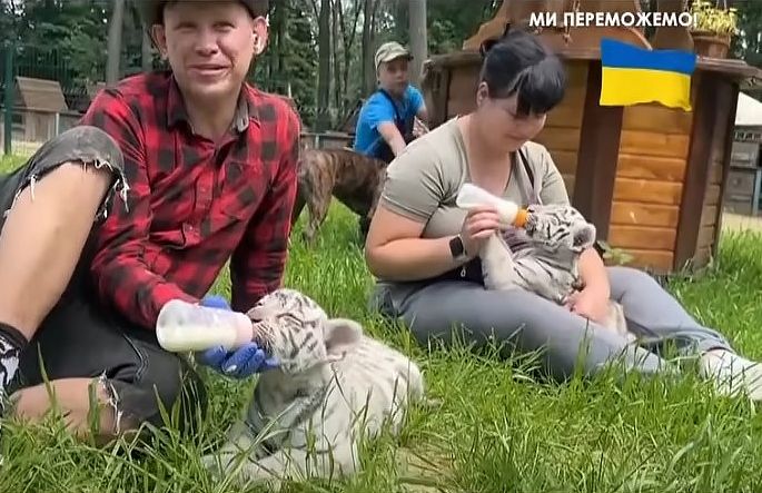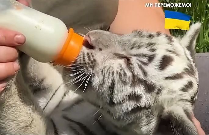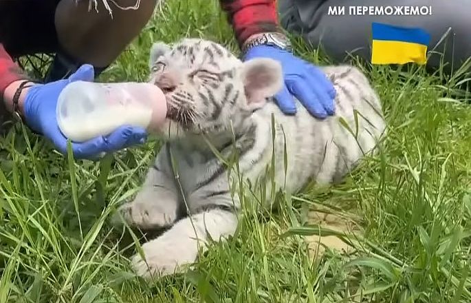 Кореспондентка 24 Каналу Анна Черненко розповіла, що мати тигренят Альба не змогла їх годувати, тож цим почали займатися ветеринари екопарку. Зараз малечі майже три місяці, їх годують молоком з дитячих пляшечок і дають м'ясо.