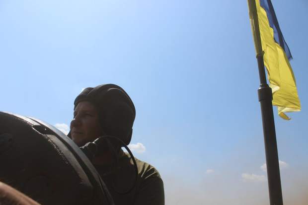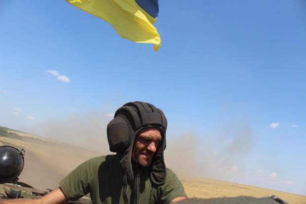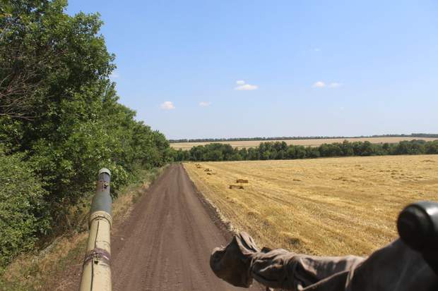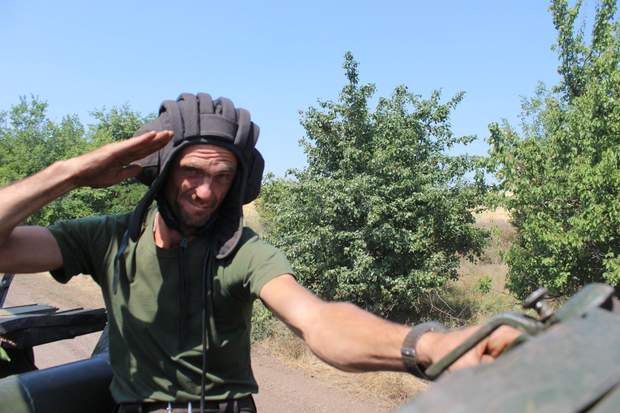 На моє щастя, екіпаж прапорщика В'ячеслава Залізняка одразу погодився прийняти на броню кореспондента. Постійно стежити за людиною, не звиклою до подібних ралі по пересічній місцевості – робота ще та. Але хлопці не звикли залишати у скруті своїх. Навіть після короткого, але детального інструктажу весь час мінімум хтось один із них ненав'язливо тримав руку поближче до мого спорядження, щоби, в разі необхідності, "схопити за шкірку" і не дати злетіти пасажиру.
