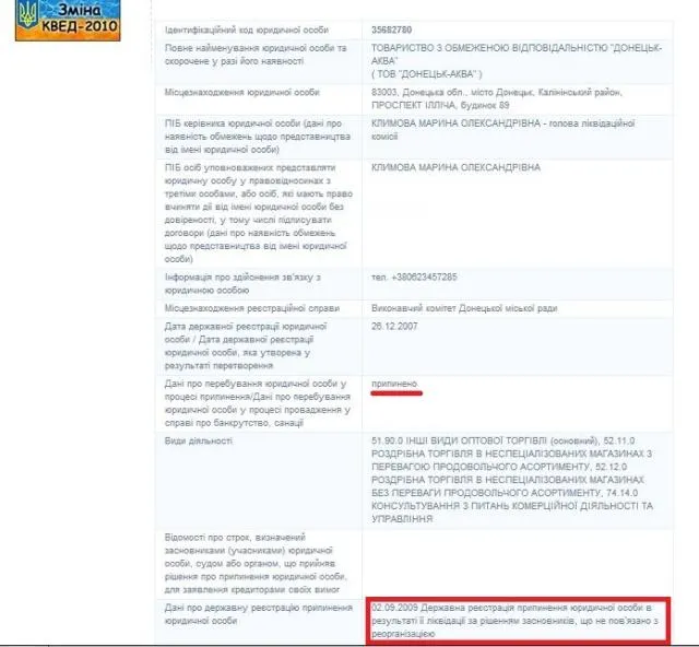 Однак на сайті державного інформаційно-ресурсного центру є відомості про реєстрацію припинення діяльності ТОВ "в результаті її ліквідації за рішенням засновників, що не пов'язано з реорганізацією".