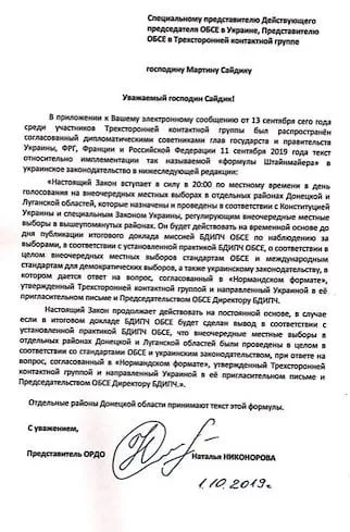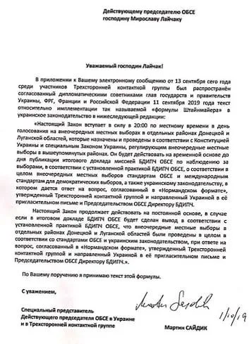 Лист, підписаний Сайдіком від ОБСЄ