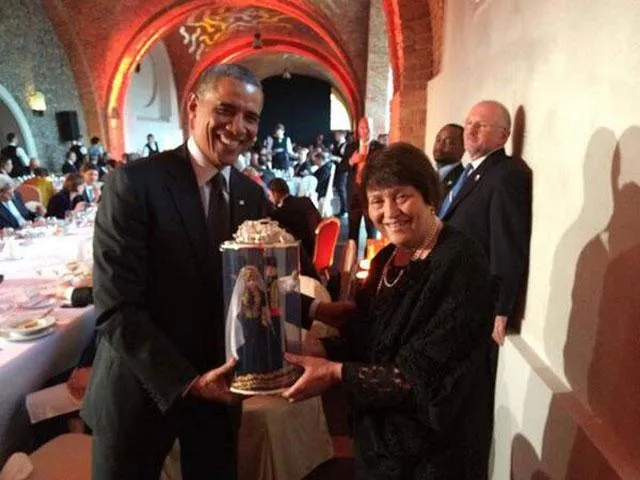Дружина Мустафи Джемілєва Сафінар дарує сувенір президенту США Бараку Обамі (Фото: @LeadAirship)