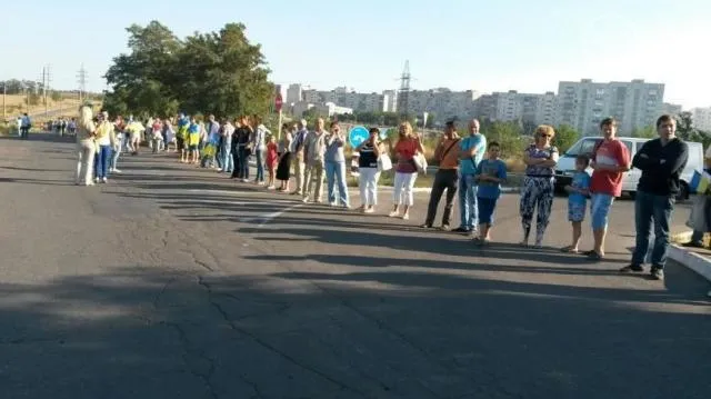 Жителі встали плечем до плеча в одну лінію, яка розтягнулася на кілька кілометрів.