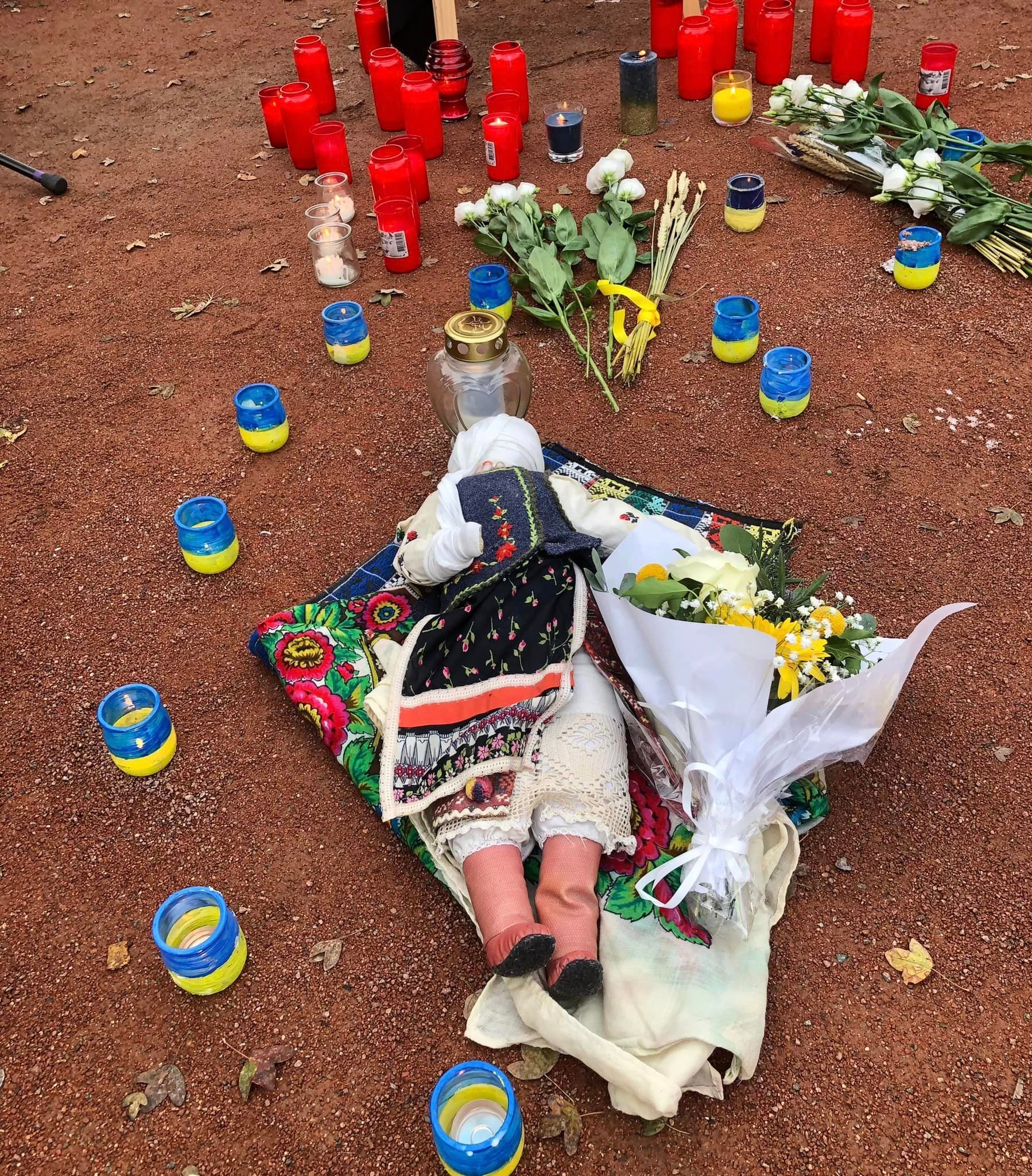 На акції пом’янули також загиблих українців у війні з Росією. Під час урочистостей президент асоціації "Комітет Україна 33" Микола Кюзен виголосив звернення, у якому провів паралелі між геноцидом, влаштованим Йосифом Сталіним у 1932 – 1933 роках та війною на знищення, яку оголосила Україні сучасна Росія.