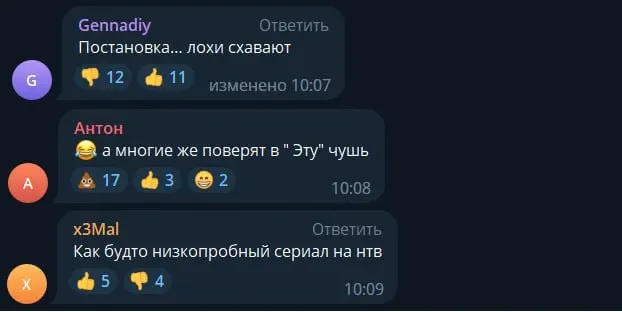 А тепер повернімося до реакції самих росіян. Вони у театралізовану виставу ФСБ не повірили. Про це свідчать коментарі, які вони залишили у місцевих пабліках.