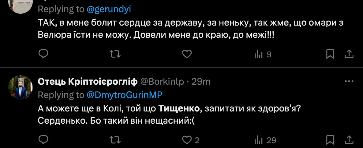 У мережі бурхливо відреагували на раптове захворювання нардепа – ішемічну хворобу серця – яку лікарі діагностували зранку перед засіданням суду. Ситуація не весела, але користувачі інтернету не вірять, що Тищенко захворів. Як реагують у соцмережах – читайте у матеріалі Розваги 24.