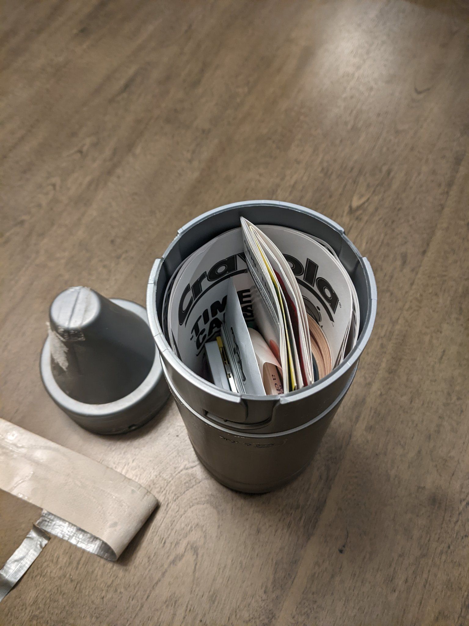 Капсулой послужила старая жестяная коробка с рисунком Crayola. Несмотря на то, что ее планировали закопать на Новый год 2000-го, этого так и не сделали – она пролежала дома у Шрейдера более двух десятилетий. И только в конце 2024-го мужчина решился ее открыть.