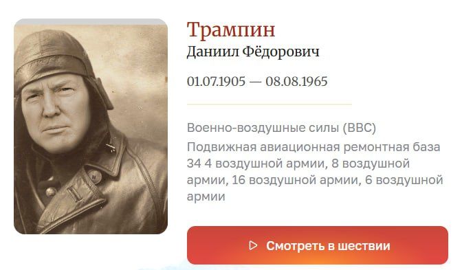 Так, на сайте "Безсмертного полка" 9 мая появились: Трампин, Витьков, Буденный, Малых, Пармезанов и другие.