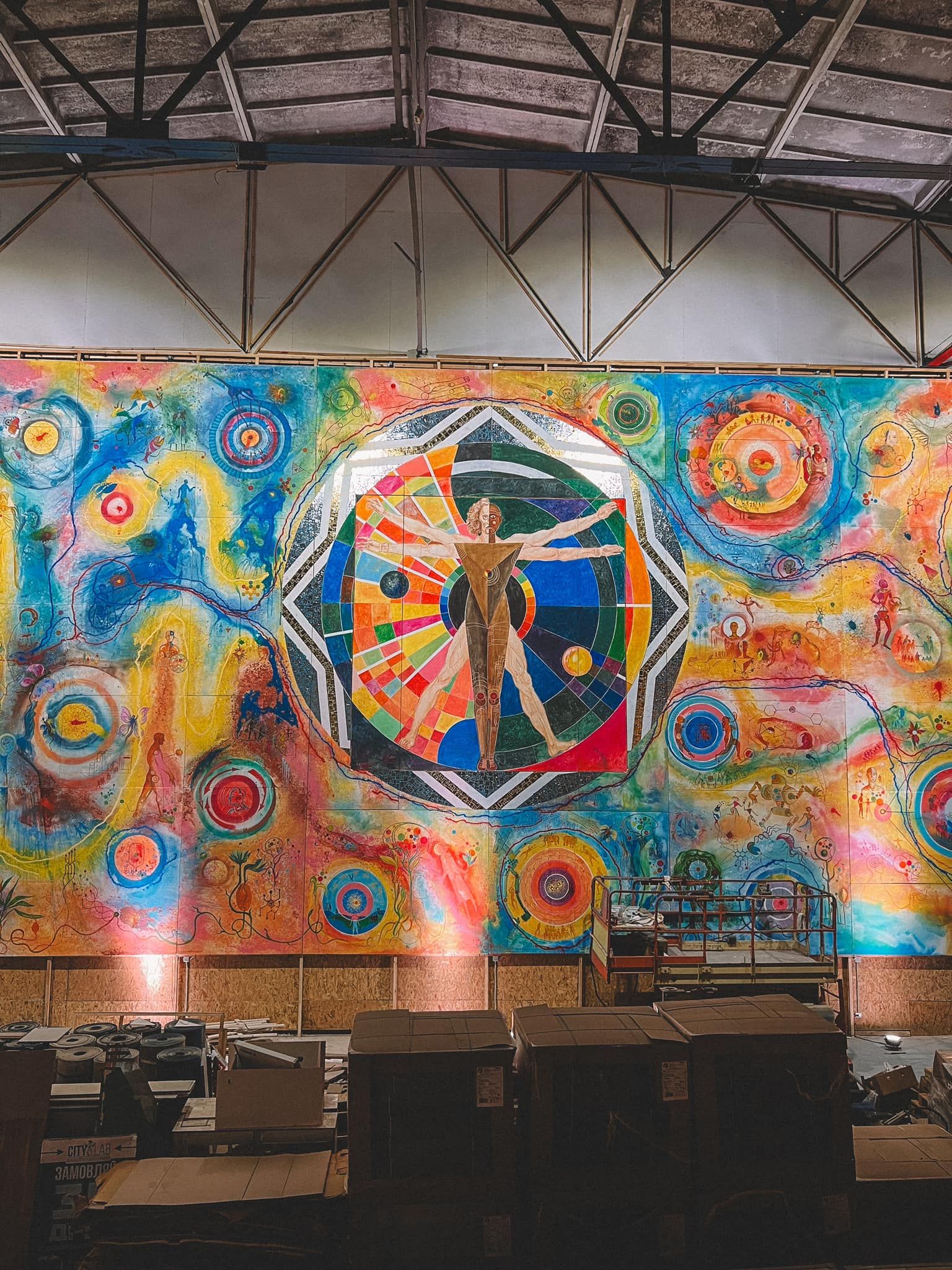 Артобъект "Космогония" установил национальный рекорд в категории "Искусство" и получил звание самого большого произведения живописи в Украине. Известно, что картина состоит из более 500 частей и 9 фрагментов – его общая площадь составляет 2000 квадратных метров.
