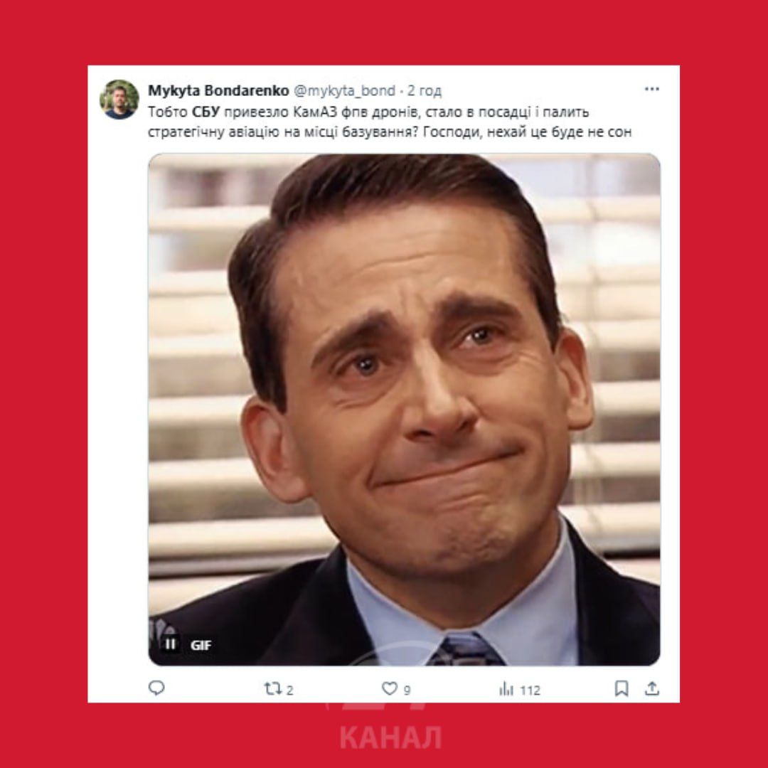 У мережі ще є багато-багато мемів про атаку по аеродромах Росії. Таку підбірку можна було б робити нескінченною.