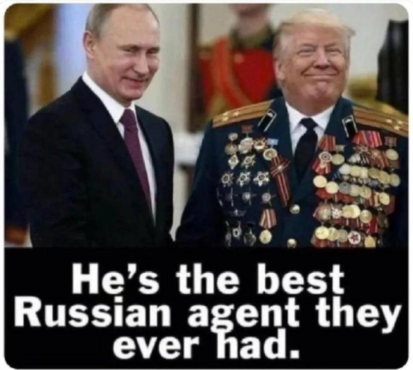 Пожартували і про те, що Трамп насправді є агентом Кремля, тому отримав багато нагород за це. А також уявили, як Путін "осідлав" Трампа, а той просить зупинитися.