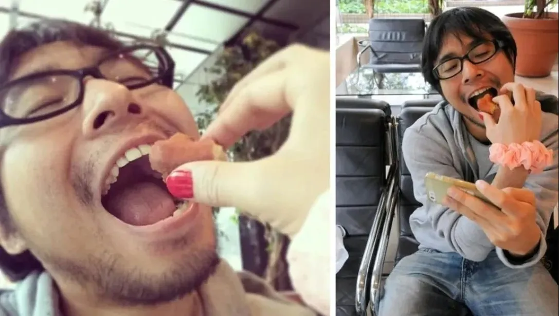 На серії зображень, що стали вірусними у мережі, Джинуші, здається, з любов'ю годує подругу з яскраво-червоними нігтями, але насправді "подруга" – це всього лише його права рука.