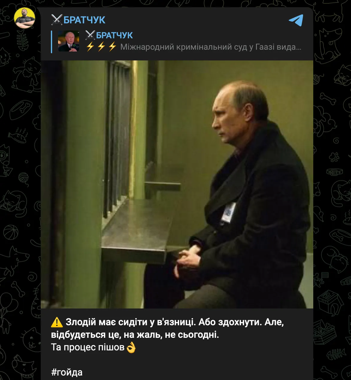 Відповідне рішення суд у Гаазі ухвалив 17 березня. Згідно з ним, президента Росії Владіміра Путіна підозрюють у скоєнні воєнного злочину. Мовиться про незаконну депортацію та переміщення дітей з окупованих територій України до країни-агресорки. Користувачі мережі блискавично відреагували мемами на ухвалу суду. 24 Канал зібрав для вас деякі з них. Відразу ж обмовимося, що поки ми пишемо цю новину, з'явилося ще безліч мемів, і це прекрасно.