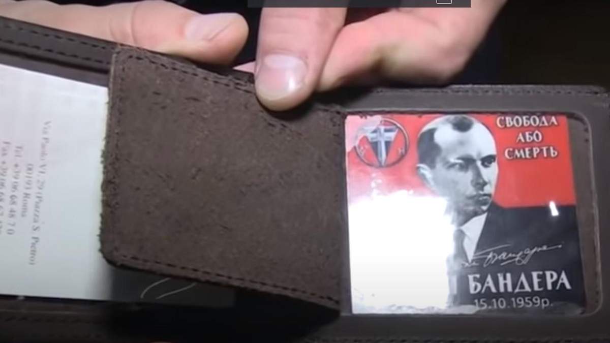 - Також в один з моментів на екрані з'являється гаманець з символікою Служби безпеки України, а також – календариком з зображенням Степана Бандери у візитівниці.