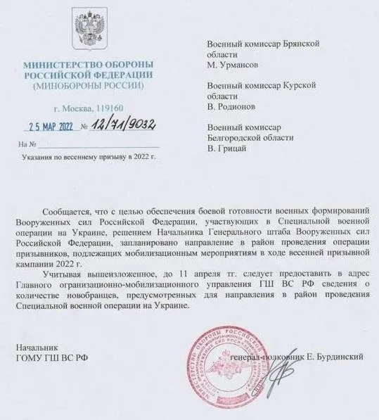 1 квітня 2022 року в Росії розпочнеться весняний призов до армії. Кремлівська влада божиться, що війна проти України буцімто "не вплине на специфіку й особливості цього процесу". Але Путін і його зграя, як завжди, брешуть. Вже є багато фактів, що Міноборони Росії під прикриттям призову продовжить уже давно розпочату приховану мобілізацію.
