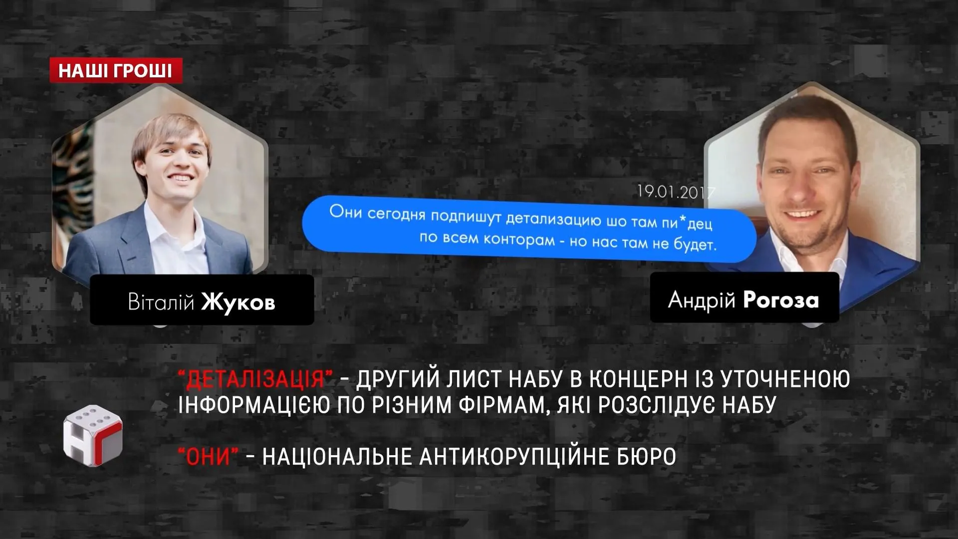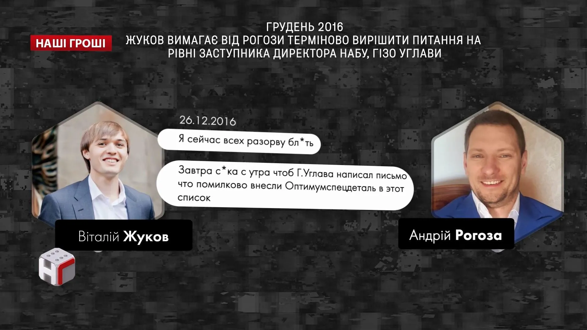 Жуков поінструктував Рогозу, що НАБУ повинно повідомити концерн, що "Оптима" – це "показово-примірне підприємство". Бо тоді концерн заплатить. Через місяць Рогоза відпише Жукову, що все нормально і НАБУ викреслить їх компанію зі списку підозрілих.