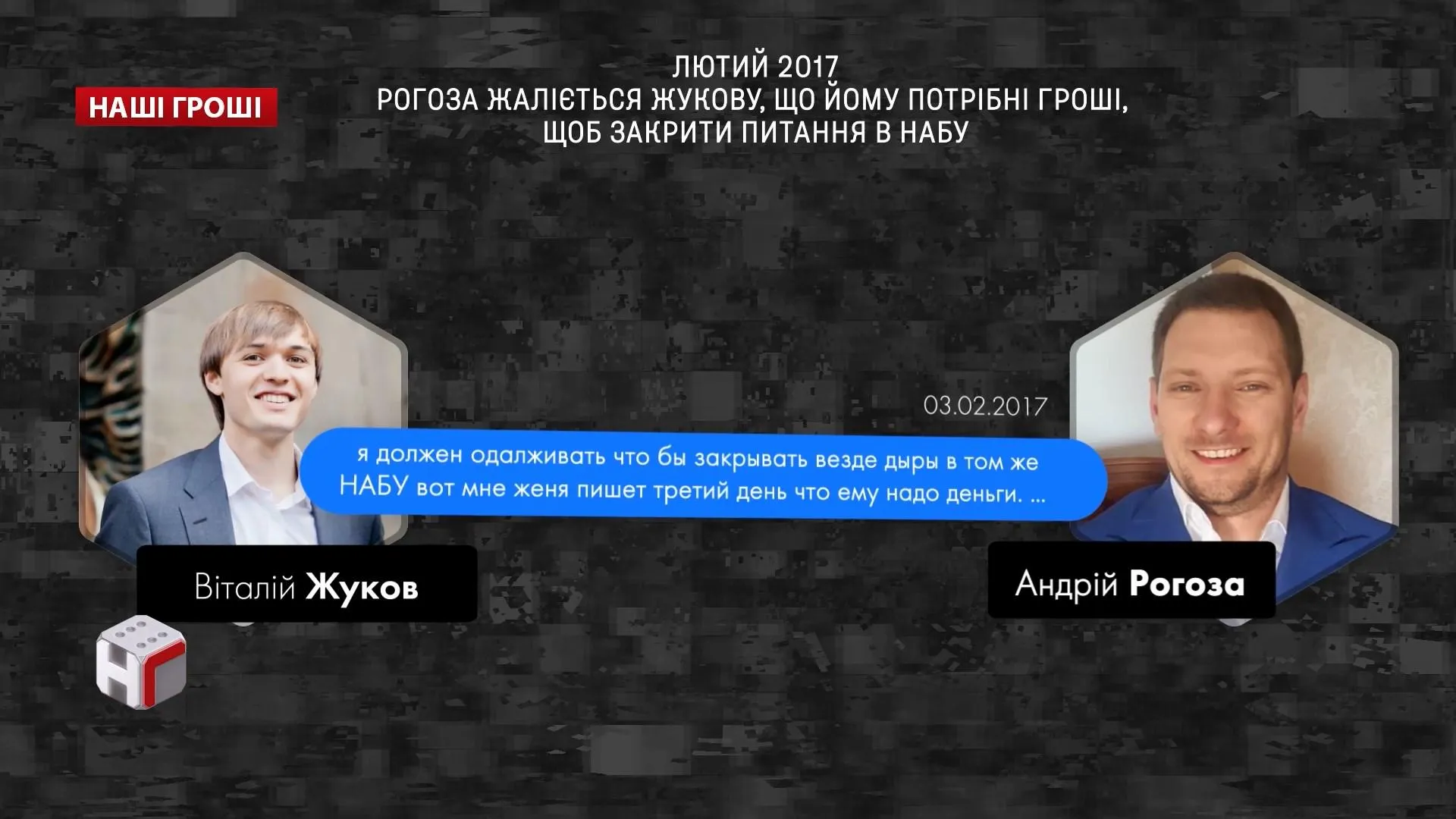 На жаль, чіткий прайс НАБУ на послуги для злочинного угрупування у листуванні відсутній, проте однозначні вказівки на платність цих послуг є. У лютому 2017 року Рогоза жалівся Жукову, що йому потрібні гроші, щоб закрити питання в НАБУ.