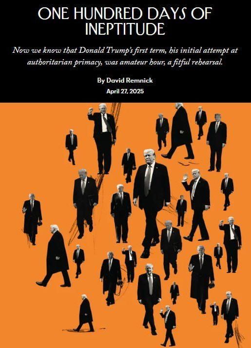 Однак ніхто в ЗМІ, схоже, так не вважає. Бо The Econimist виходить з обкладинкою, на якій зображено понівеченого за перші сто днів Трампа лисого орла (він же – білоголовий орлан) – національний символ Сполучених Штатів, а The New Yorker безжально діагностує цей же період як "100 днів бездарності".