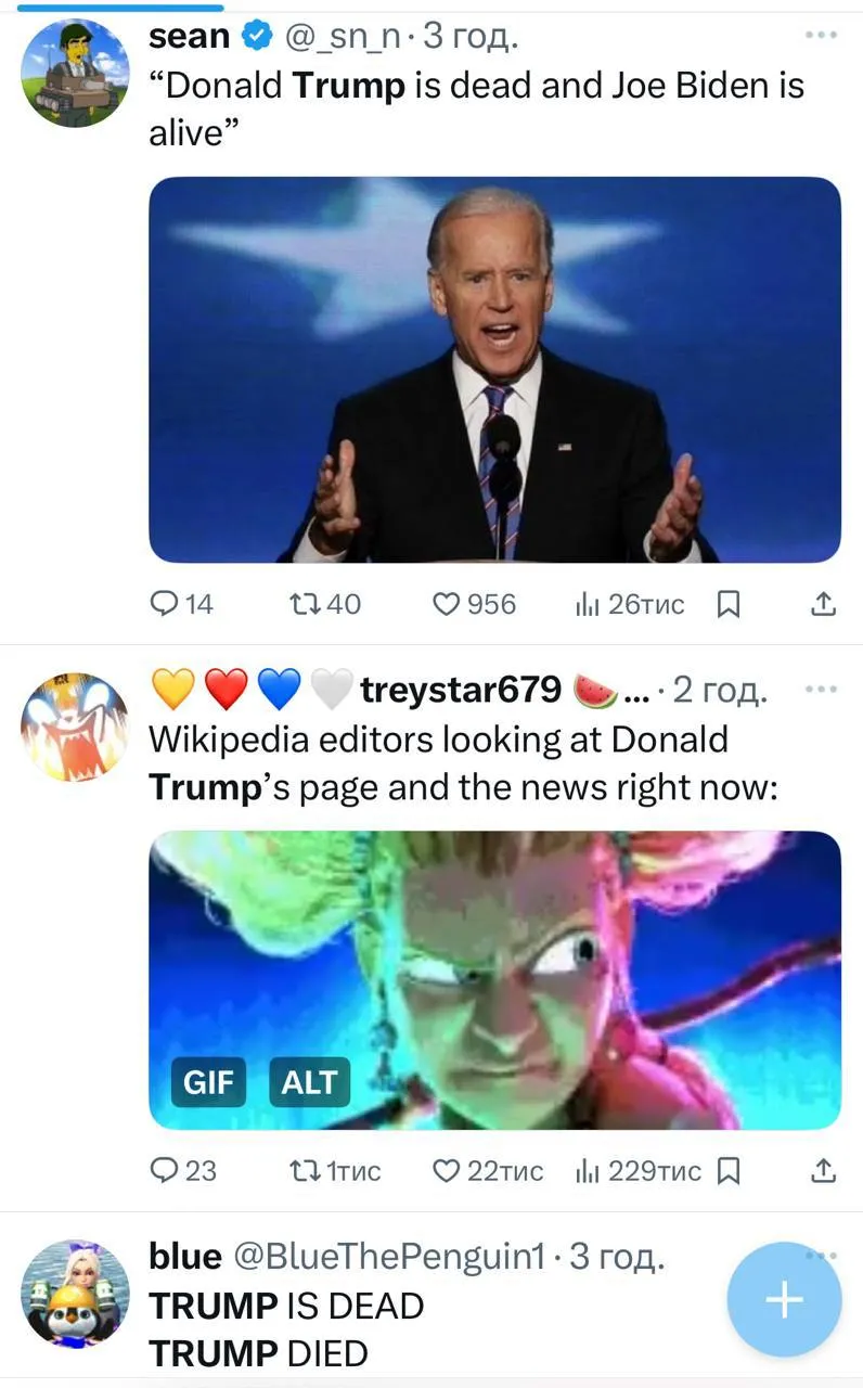 Про це повідомляє 24 Канал з посиланням на NDTV World. Тисячі постів про смерть Трампа набирають мільйони переглядів по всьому інтернету.