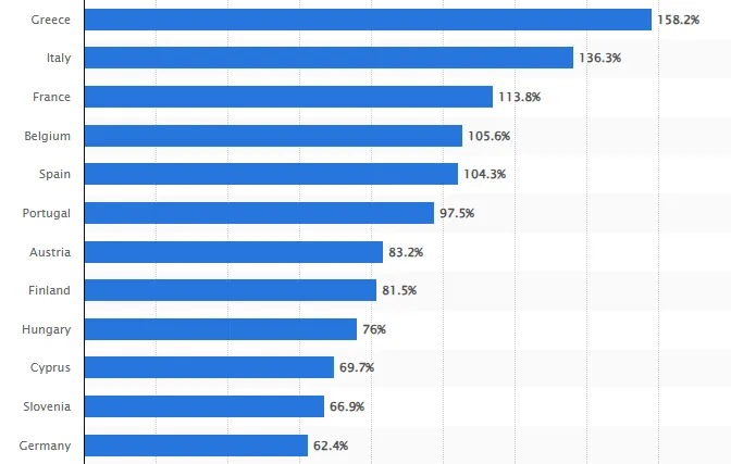 Держборг Франції сягнув 113% відносно ВВП країни, дані за третій квартал 2024 року / Джерело Statista
