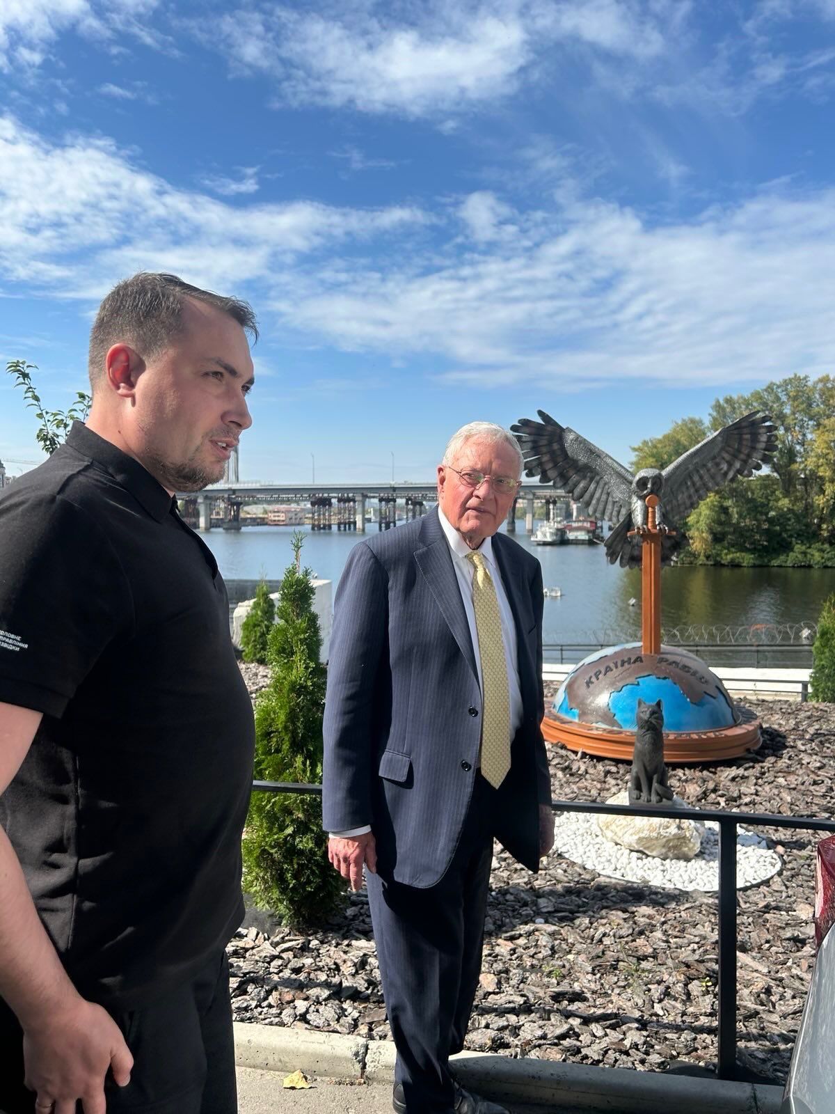 Келлог з очільником ГУР Будановим біля пам'ятника коту / Фото зі сторінки спецпредставника Трампа
