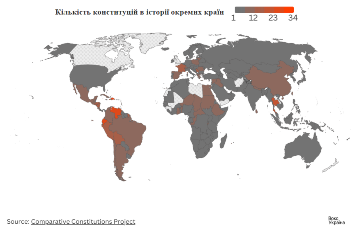 Кількість конституцій в історії окремих країн / Вокс Україна
