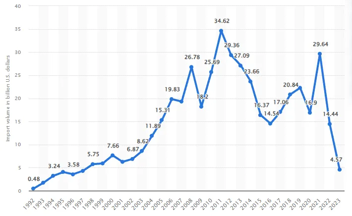 Обсяг російського експорту до США після 2022 року опустився до показників 90-х років / Statista
