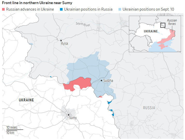 Лінія бойового зіткнення на Сумщині / Мапа WSJ