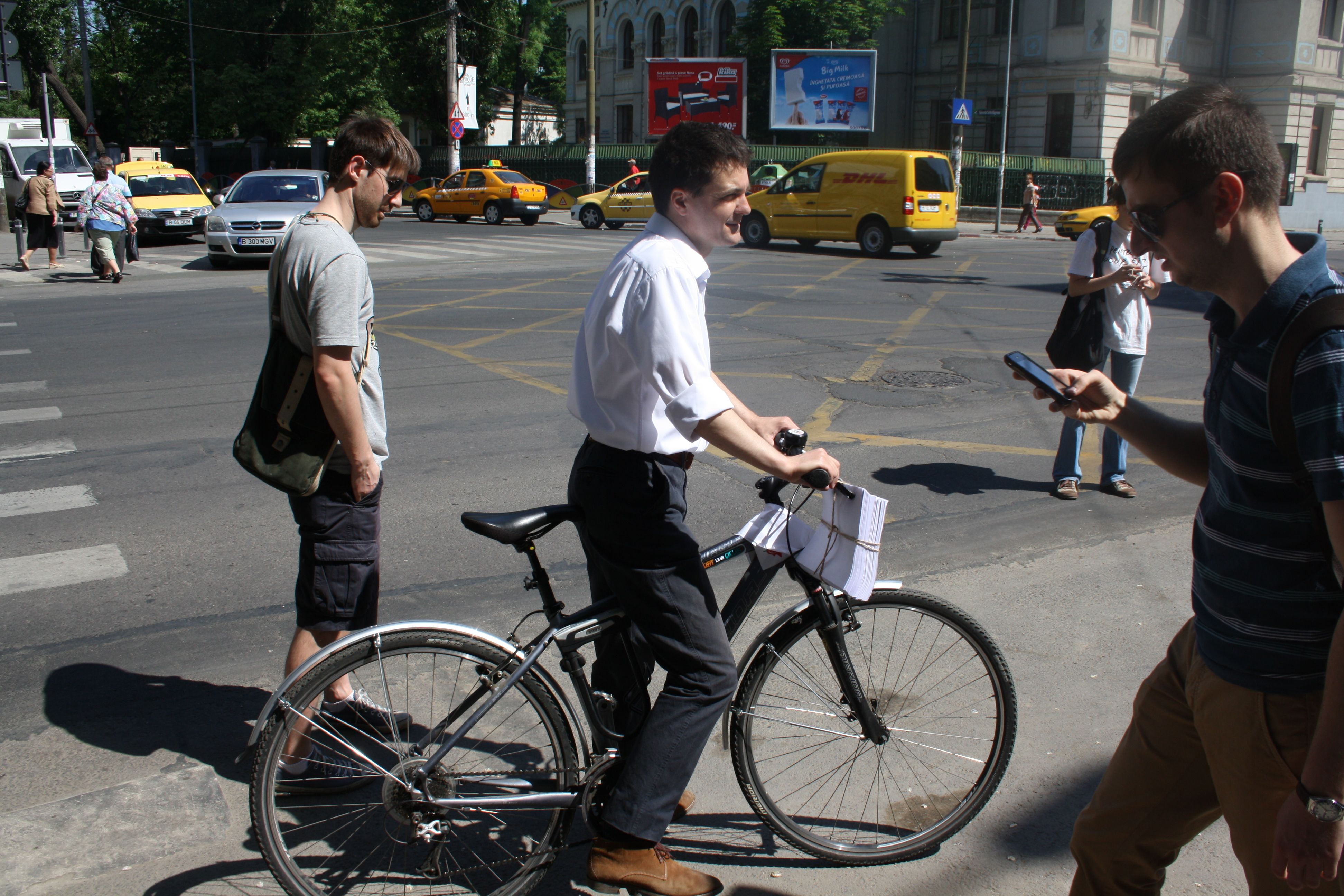 Нікушор Дан агітує на велосипеді / Фото Wiki