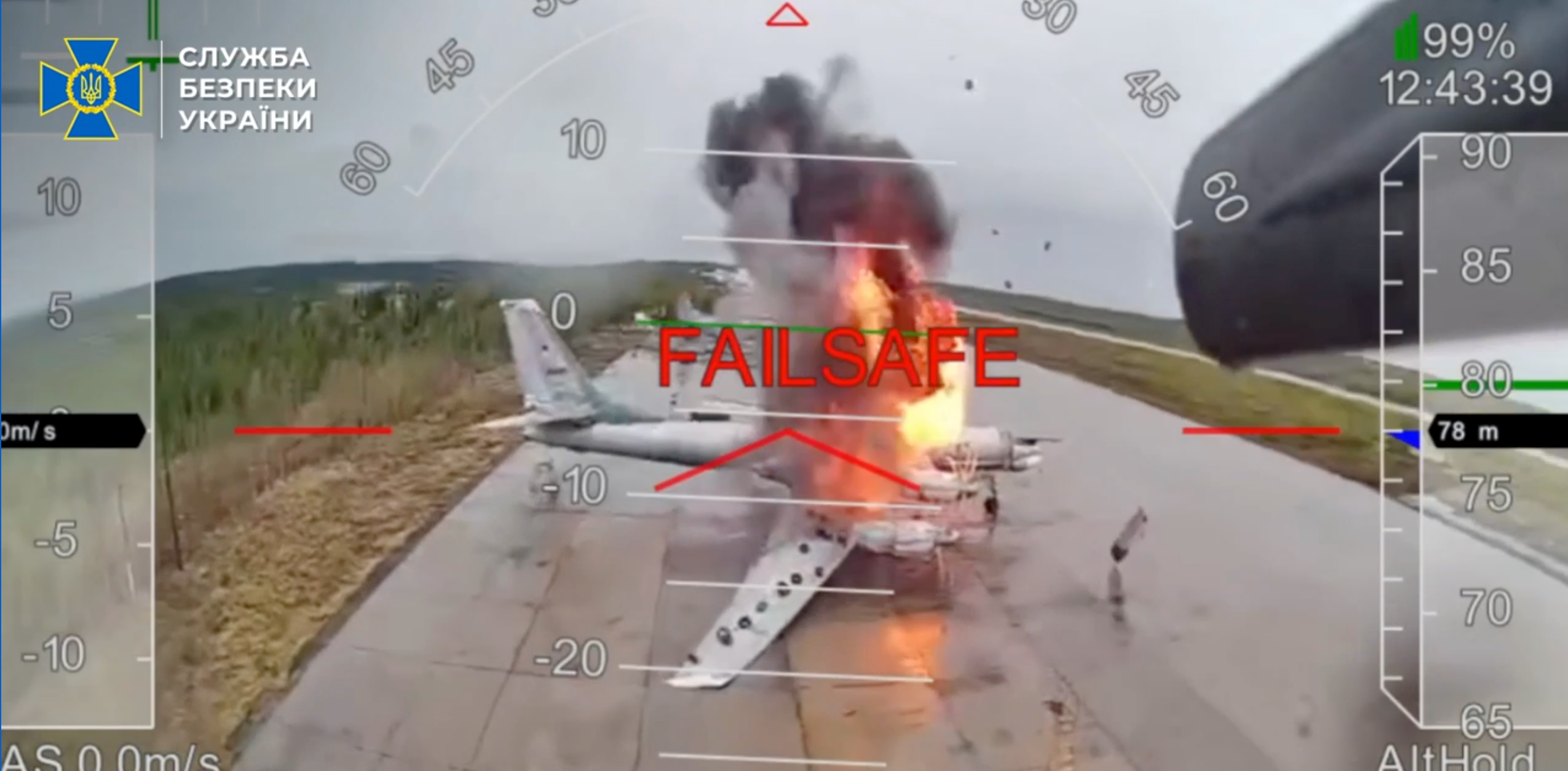 Момент влучання дрона у російський літак / Скриншот з відео СБУ
