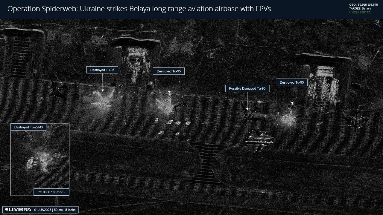Понад 40 літаків, включно з високопріоритетними Ту-95 і Ту-22М3, були знищені або пошкоджені в результаті цієї операції.