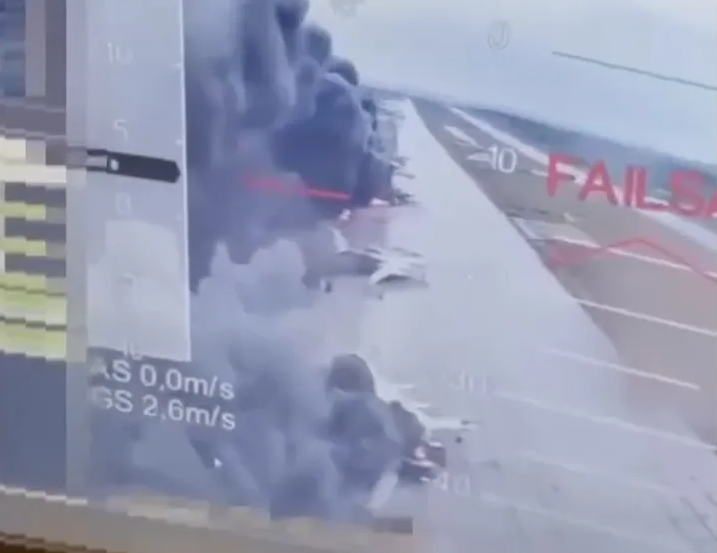 Один з дронів демонструє задимлені російські літаки під час атаки на авіабазу "Оленья"