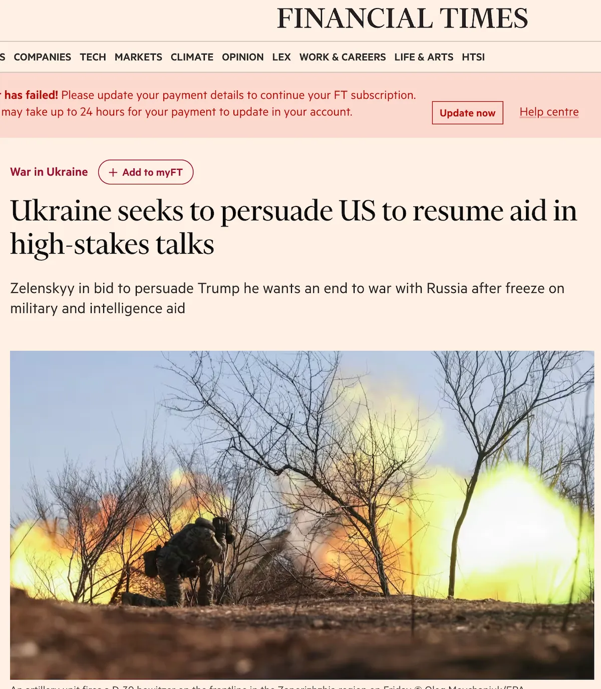 Замість цього Трамп наказав зупинити всю допомогу Україні. Показово, що ця допомога була не "від Трампа", а залишки, які не встигли відвантажити з пакетів допомоги Байдена. Також Трамп наказав зупинити надання Україні розвідувальної інформації.