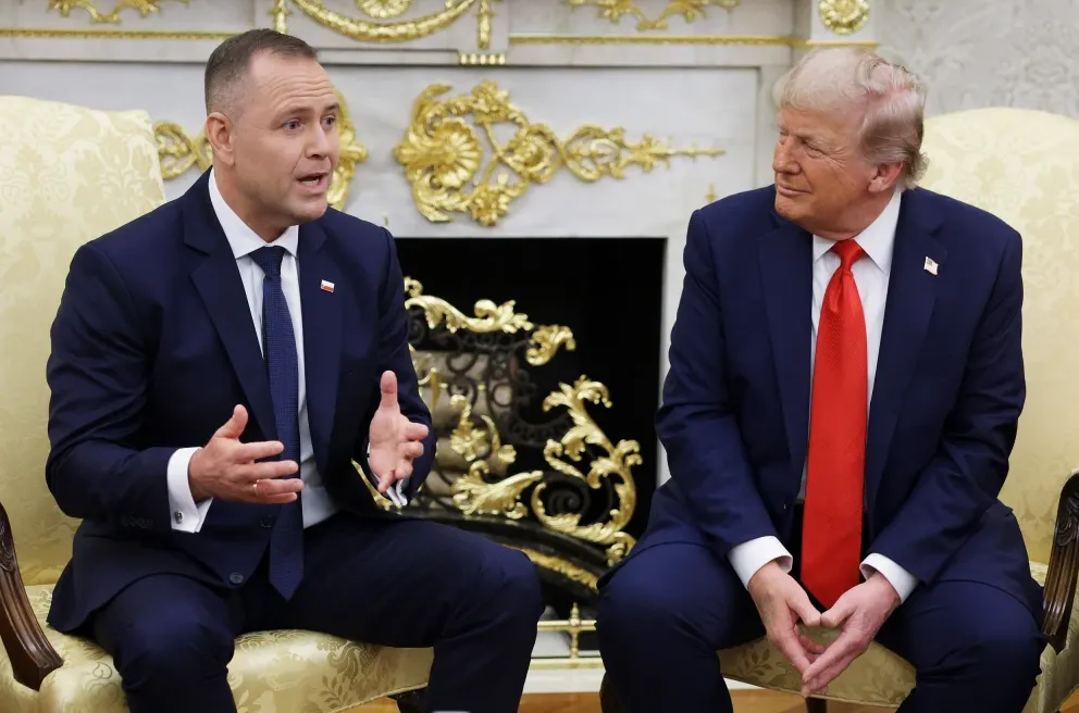 Накануне российской атаки президент Польши Кароль Навроцкий встречался в Белом Доме с Дональдом Трампом / Фото Getty Images